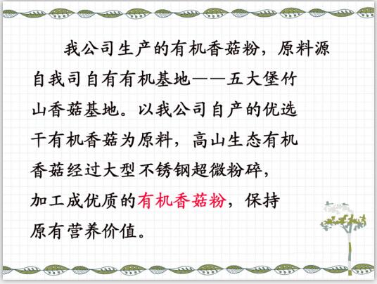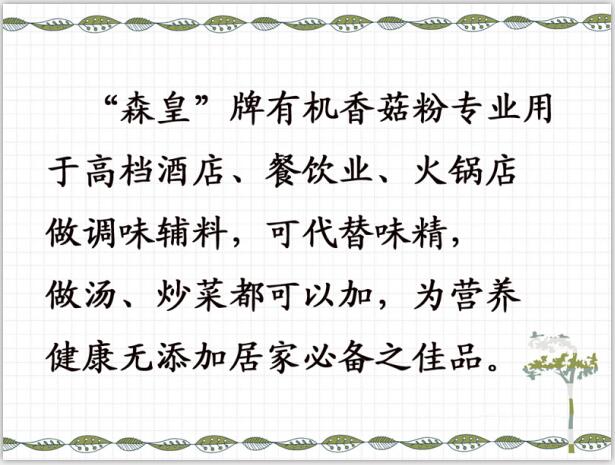 有機香菇粉,灰白色粉末,100目,專業用于高檔酒店、餐飲業、火鍋店做調味輔料,可代替味精,做湯、炒菜都可以放。營養健康無添加,居家必備之佳品。